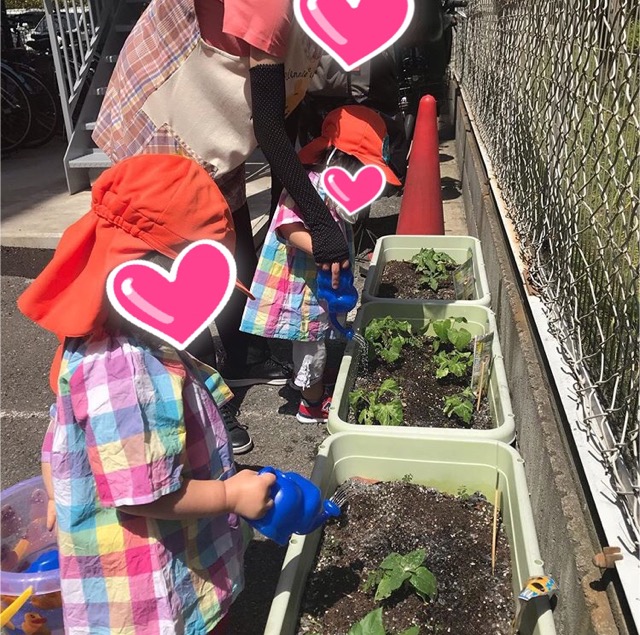 水やり~どんどん大きくなってきたね♬ 大日保育園