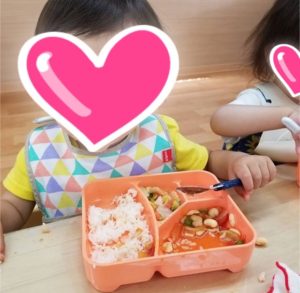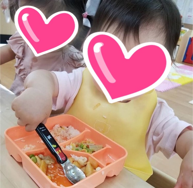 今日も楽しい給食の時間♪ みんな一緒にいただきま~す! おはしやスプーンを使ってみんな上手に食べています 残さず食べて偉かったね~🎶 いっぱい食べて大きくなってね💛
