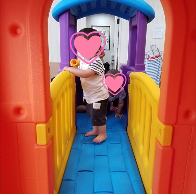 今日は大型遊具で遊びました❕ 大日保育園ではお部屋に大きな遊具があるので雨の日やお散歩に行けない日もめいっぱい身体を動かして遊ぶ事ができます♪ トンネルをくぐって、すべり台をシュー🎶 みんなおおはしゃぎでした(^^)