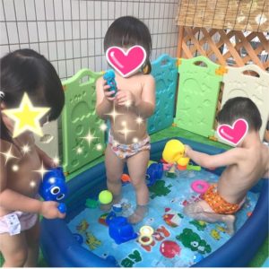 1階には日陰もあるためこの暑さでも子ども達は元気いっぱいに水遊びを楽しむことができました♪