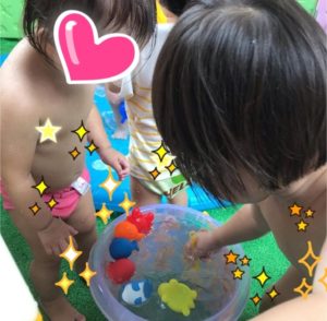 かわいいお魚をバケツに浮かべて釣りをしました🐟