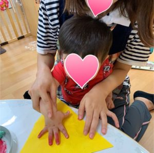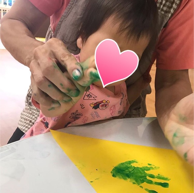 大日保育園では今月秋祭りを行います! そのためにみんなで楽しく準備を進めています 今日は飾り付けの旗にみんなの手形をペッタン🎶 つなげてみたらどんなガーランドになるのかとっても楽しみです💖