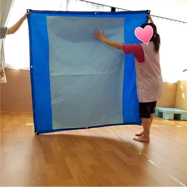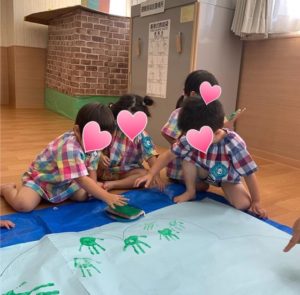 大きな模造紙に子ども達の手形をスタンプしました❕