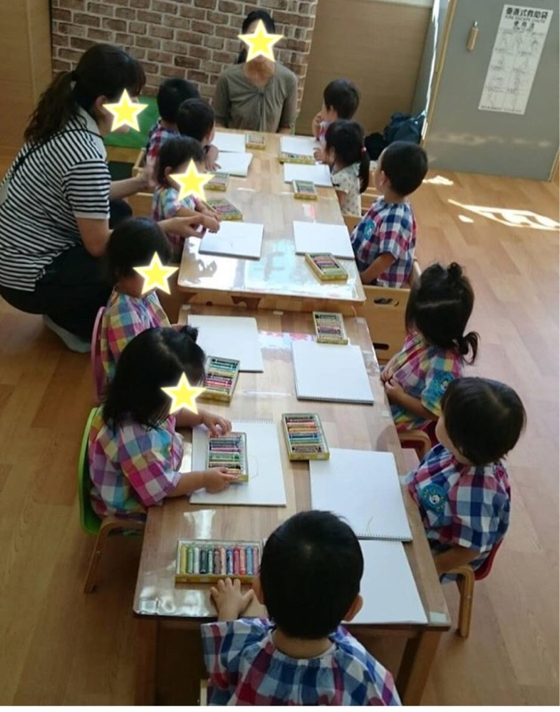 今月も絵画の先生に来ていただき子ども達は楽しくお絵描きしました。 描くことを楽しい、面白いと感じてもらえるようにいろいろな工夫をしてくださいました。