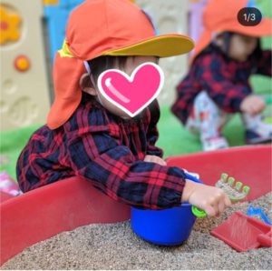 とんとんとん🎶『カニさんおはよ~💖』とみんなでご挨拶をしてからお砂場遊びが始まります✨ 大日保育園のお砂場はカニさんの甲羅の形の蓋が付いたとってもかわいいお砂場です♪ みんなカニさんが大好きで必ず挨拶をしてから砂場遊びが始まります! 子ども達のかわいい姿に私達職員も幸せな気持ちになります💛
