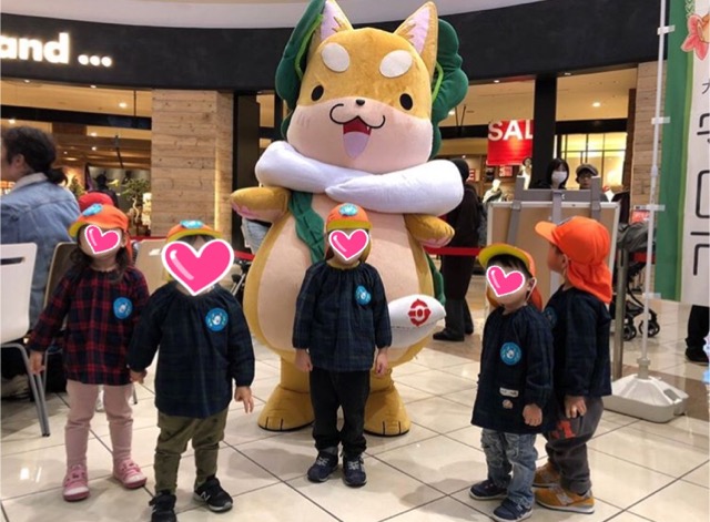 近くの商業施設に『もり吉』が来るということで2歳児さんみんなで会いに行きました!