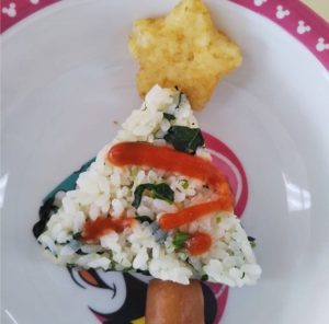 お昼ご飯はクリスマスツリーのご飯です✨