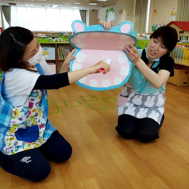大日保育園でも歯の大切さのお話や正しい歯磨き方法をみんなで学びました。