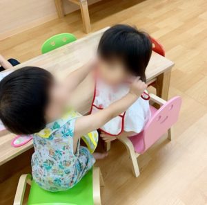 1歳児さんクラスでのかわいい光景です♬