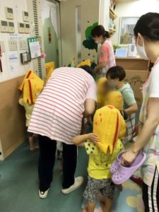 子ども達は先日、行った避難訓練をしっかり覚えてくれていました♬