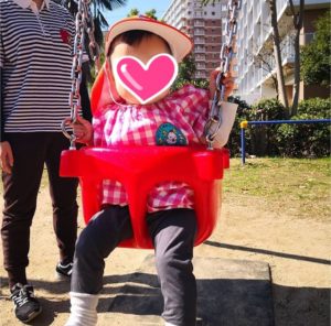 知さな子も遊べるガード付のブランコに乗ってゆ~らゆら