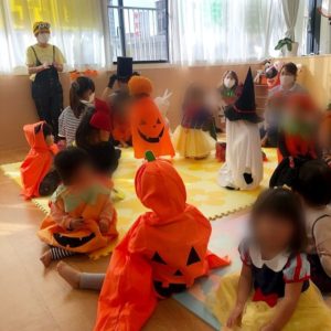 手作りバッグを持ってお菓子をもらいにいったり、お歌を歌ったり楽しい時間を過ごしました♬