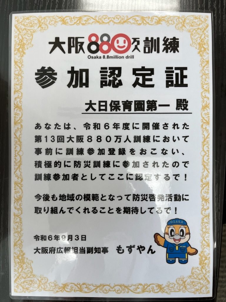 毎年参加登録をしていますが、今年はかわいいもずやんの参加認定証をいただきました!