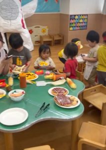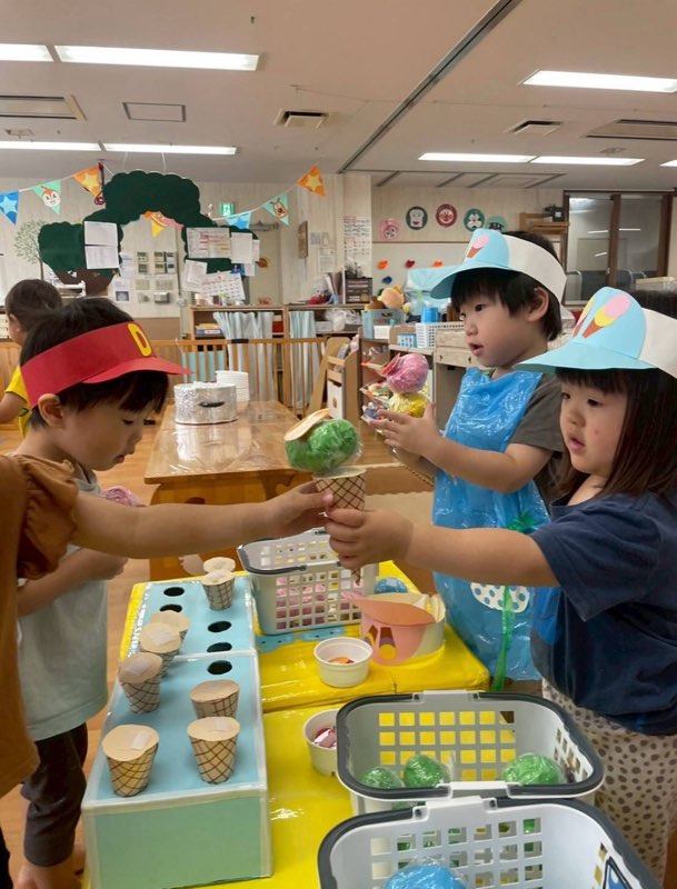 先日おこなった夏まつりのお店屋さんも使ってお店屋さんごっこをしました!