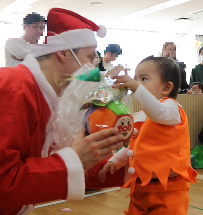 突然の登場に驚いたり、ちょっぴり緊張した表情の子どもたちでしたが、サンタさんから一人ひとりプレゼントをもらうと、嬉しそうな笑顔がたくさん見られました。