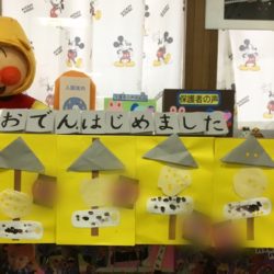2歳児さんの今月の壁面製作です♬ 三角、丸、四角の画用紙を細長い画用紙の上に貼っていきます。 何ができるかなあ?? 模様を付けたら… 『おでん』の完成です💛 まだまだ寒い日が続いていますのであったかいおでんが食べたくなりますね✨ …