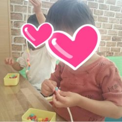 とっても真剣に紐通しをしています(^^) 子どもたちみんな、私達が驚くほどの集中力を見せてくれました。 ビーズの誤飲に十分注意して楽しく遊びました! お絵描きする子どもたちはのびのびと素敵な絵を描いてくれました💖 …