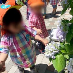 園の近くに咲いている紫陽花を見に行きました❕❕ そーっと触ってみたり匂いを嗅いでみたり 少しの時間でしたが、良い天気の中お散歩に行くことができました♬…